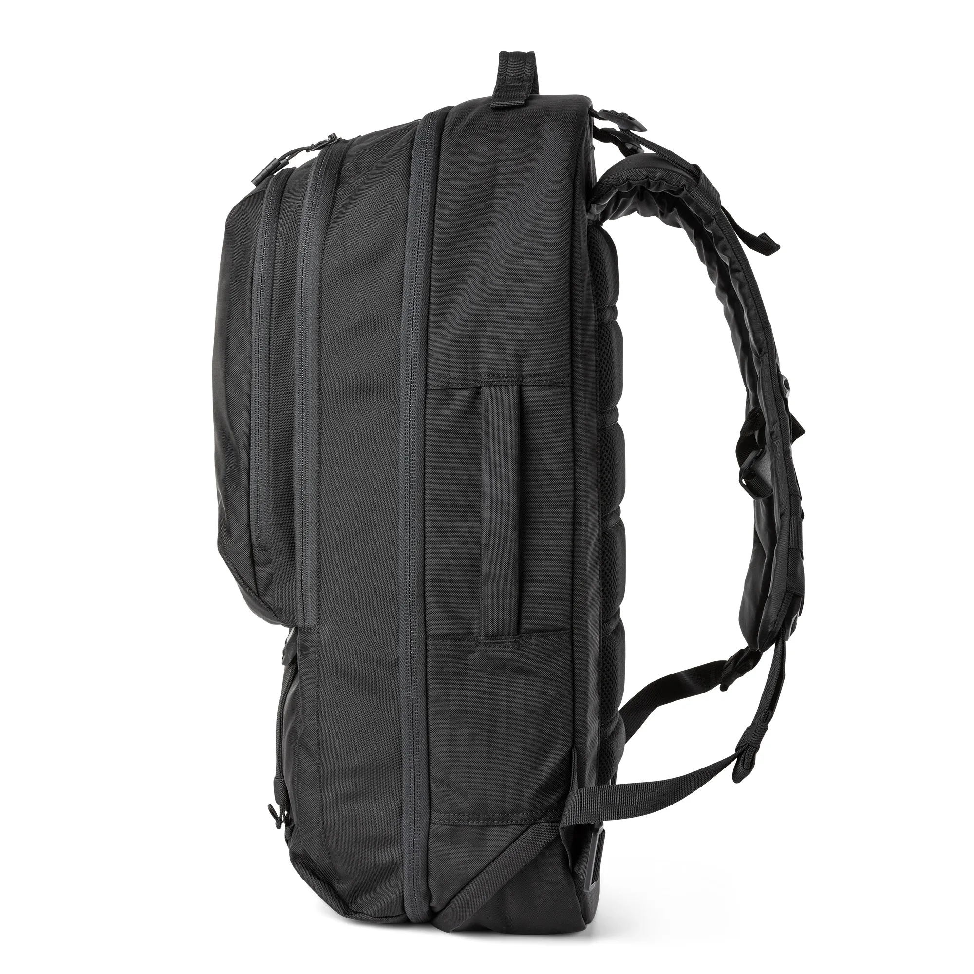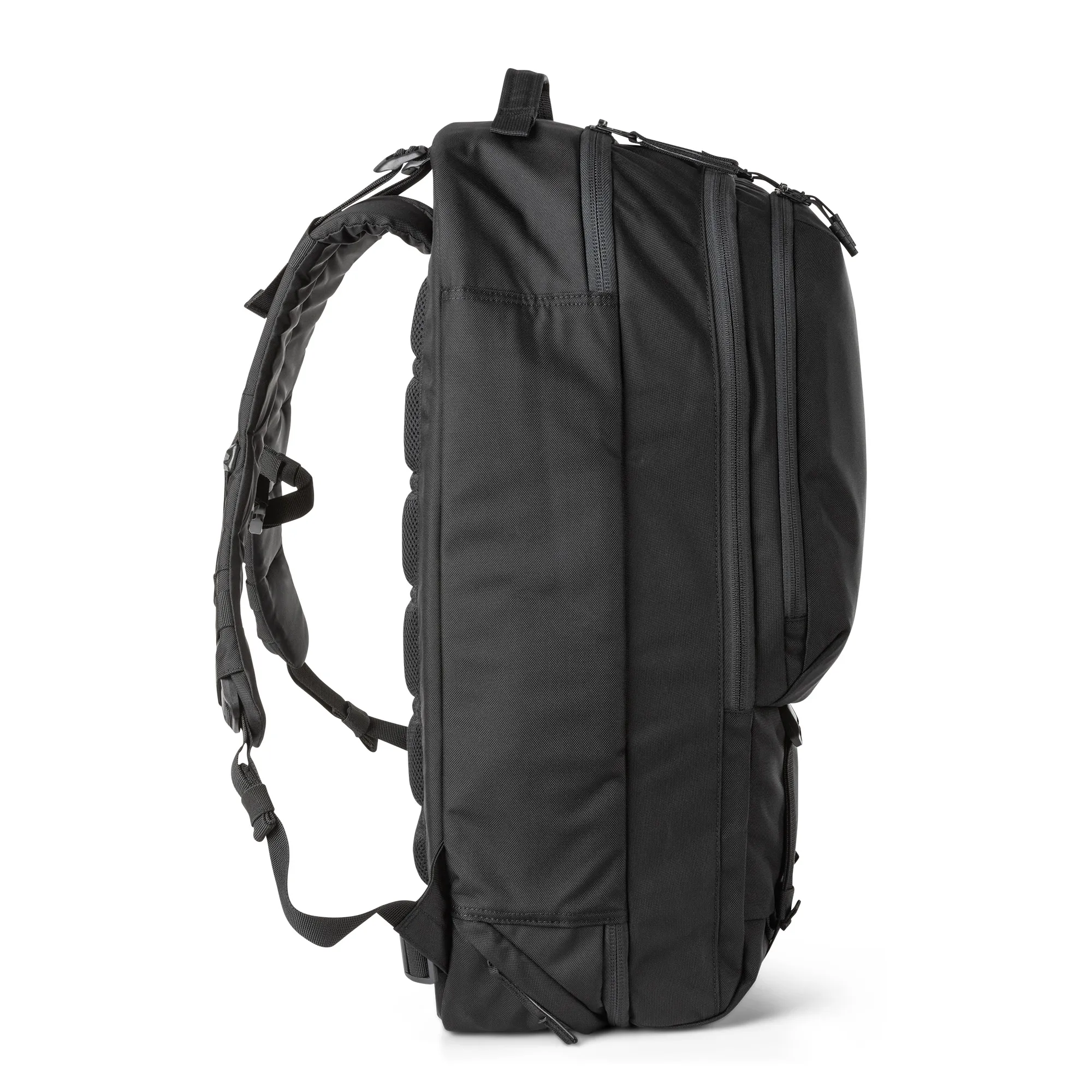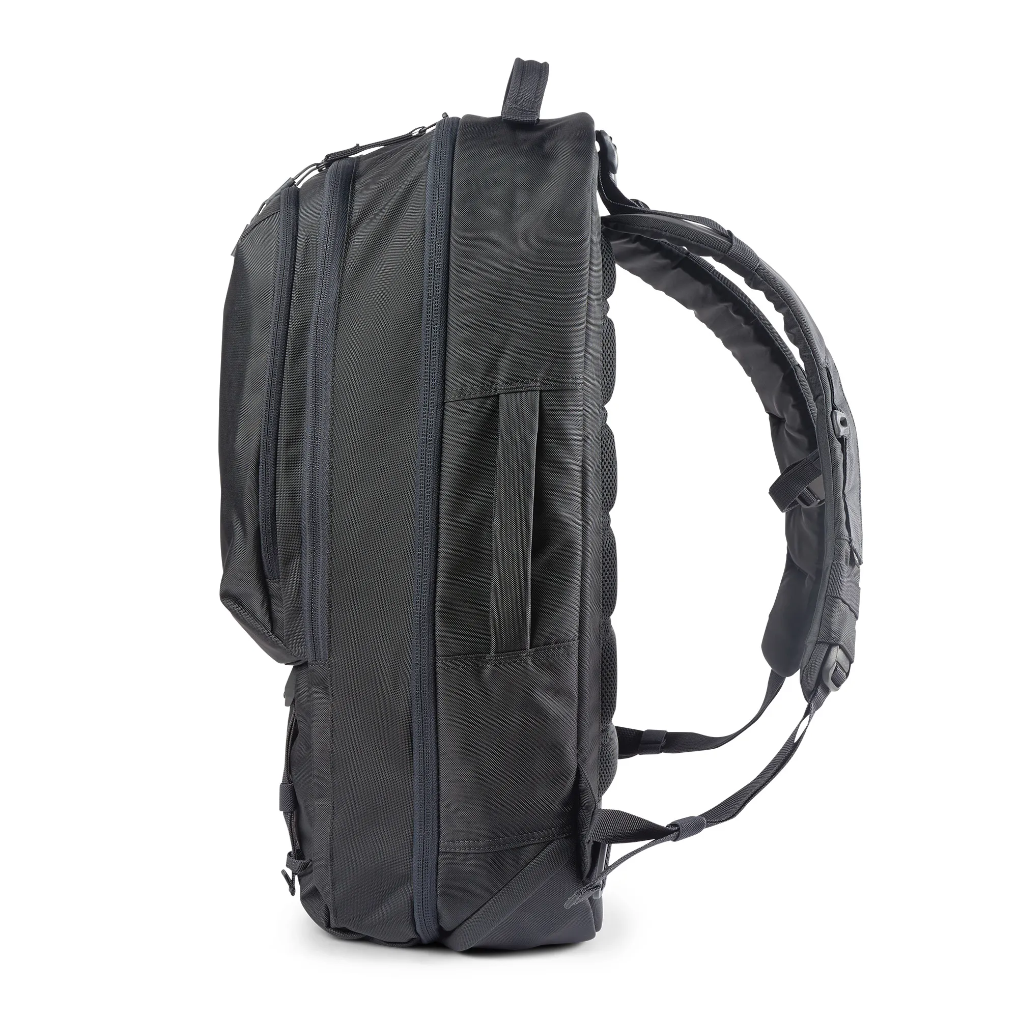 A mochila LVC Covert apresenta um design CenterLine™ exclusivo da 5.11 e as etiquetas dobráveis ajudam a manter um perfil discreto. O exterior é equipado com alças de ombro de liberação rápida, uma alça de esterno removível, uma alça de transporte lateral e alças de correias inferiores para carga extra ou para prender a bolsa 5.11 LVC6 . Os bolsos frontais duplos são projetados com organização administrativa e correias MOLLE para que você possa organizar seu carregamento para se adequar à missão. Dentro do compartimento principal, uma capa acolchoada suspensa para laptop e um bolso de malha com zíper oferecem mais armazenamento. O compartimento secundário para armas tem um bolso de cano reforçado, presilhas de rede e duas correias de retenção de armas longas. Uma extensão suspensa de 3″ no compartimento primário de armas pode acomodar armas de fogo compactas ou de tamanho normal. Tri-glides para fixação opcional de cinto na cintura, uma estrutura de alumínio HDPE e estofamento de espuma confortável com um canal de punho flexível na parte traseira tornam esta mochila fácil de usar. A mochila da série LVC que combina perfeitamente conforto e dissimulação.